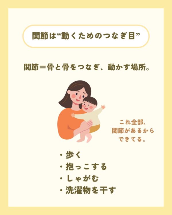 歩く、抱っこする、しゃがむ、洗濯物を干す… これ全部、関節があるからできること。