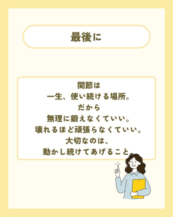 関節の痛みを感じると、「どこか壊れてるのかも」と不安になりますよね。