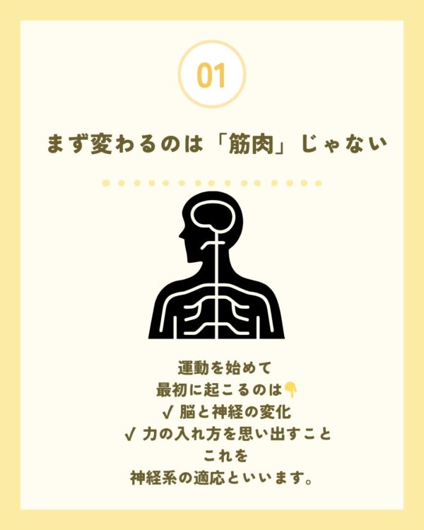 運動を始めて最初に起こる変化、それは筋肉がつくことではありません。