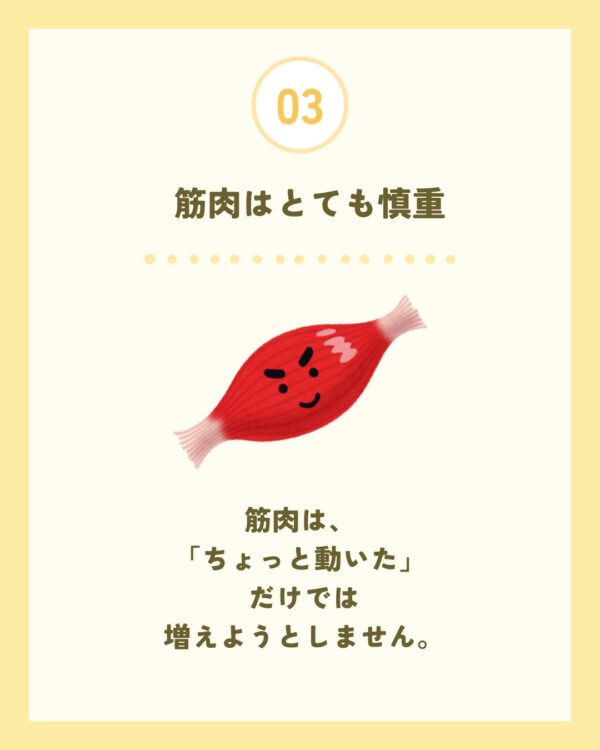 ここで知っておいていただきたいのが、筋肉はとても慎重だということ。