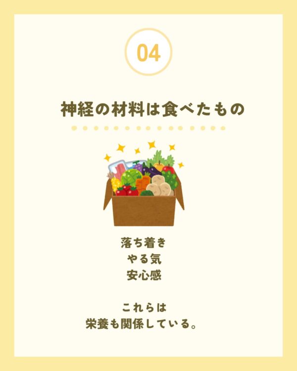 栄養サポート:神経系の材料となる栄養について、一人ひとりに合ったアドバイスをお伝えします