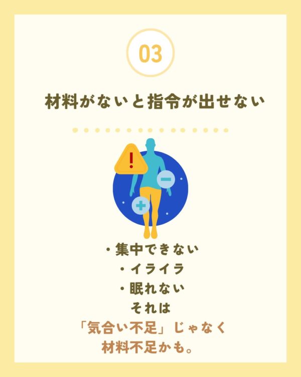 でも実は、それは**「気合い不足」ではなく「材料不足」**のサインかもしれないんです。