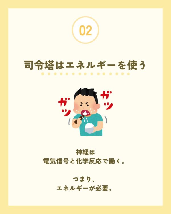この司令塔、ただ「指示を出す」だけでもエネルギーを消費します。