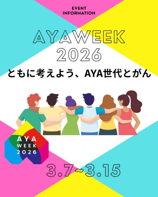 もしよかったら、AYA世代のがんについてまわりの方にお話ししたり、AYA weekの公式アカウント(@ayaweek2026)をのぞいてみてくださいね。
